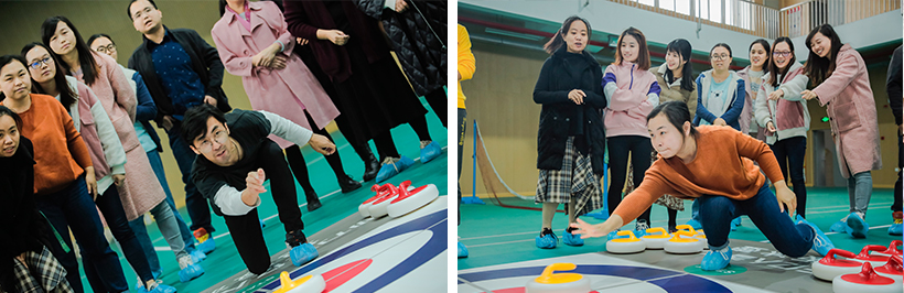 教練會(huì)細(xì)心講解冰壺的游戲規(guī)則,并親自示范冰壺額操作技巧和對陣打發(fā)。
